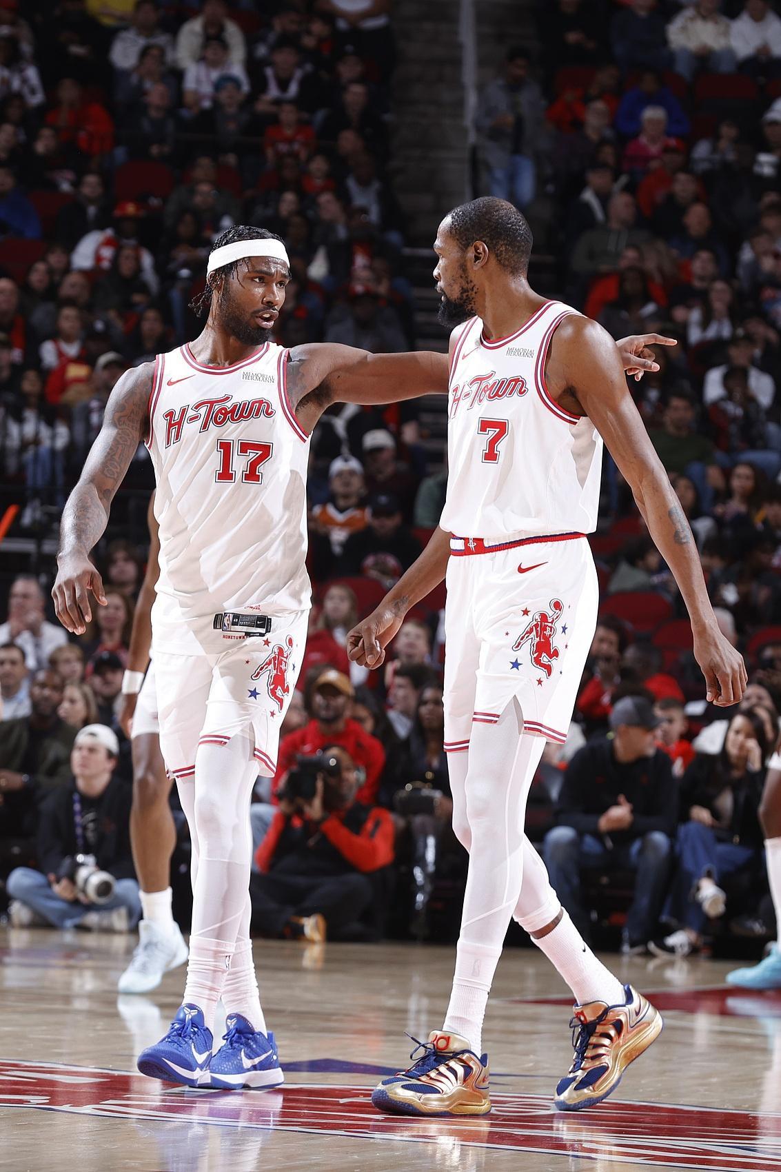 但问题在于火箭队这场打得还是非常的艰难。一方面在关键时刻杜兰特被包夹,火箭队很难通过其他的战术得分。另一方面,火箭队首发阵容当中充斥着太多防守型的球员。芬尼史密斯三分投篮命中率在20%出头,阿门汤普森几乎很难投进三分,而伊森近来的三分表现也相当的一般。